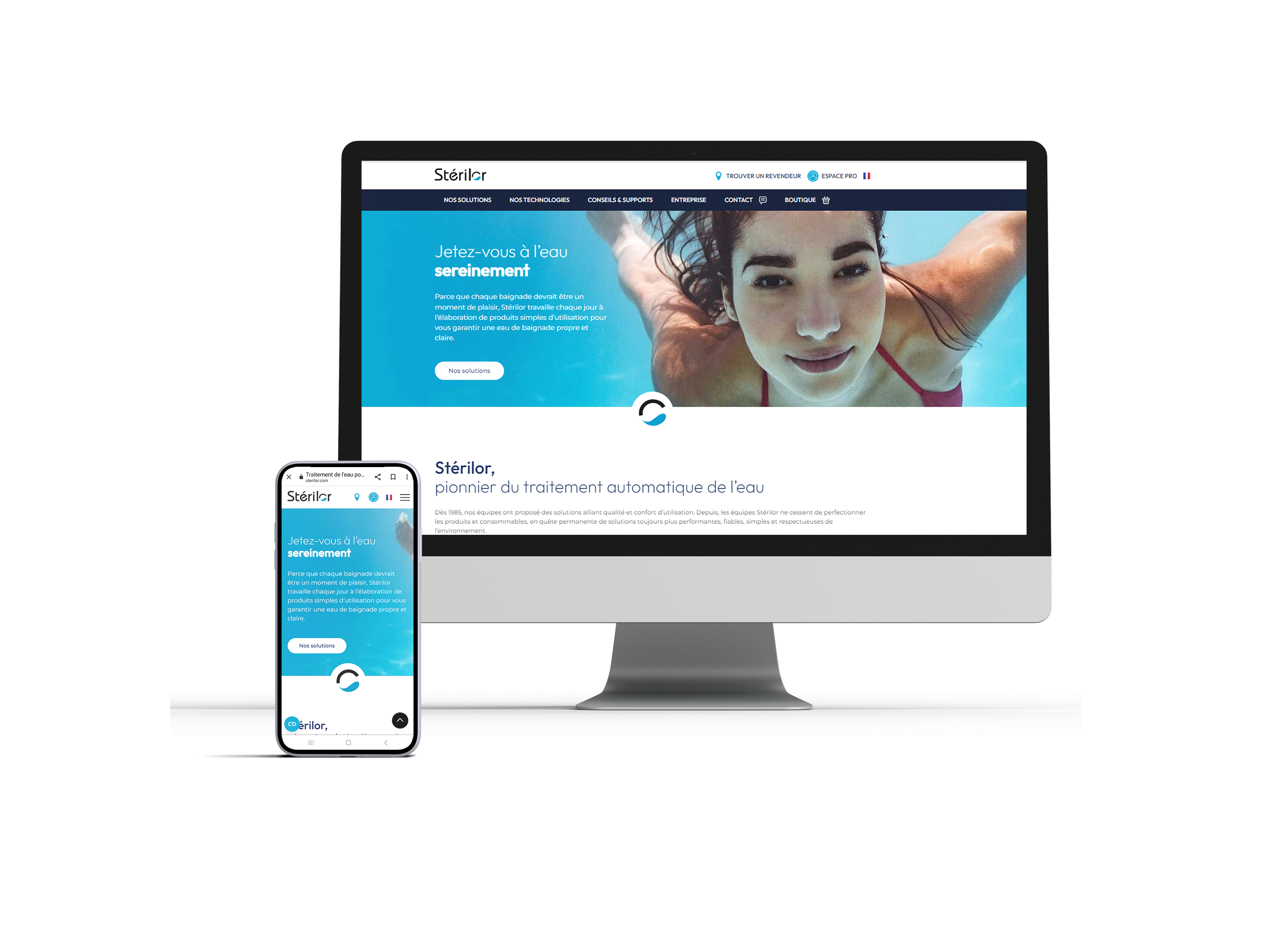 Con il suo nuovo design, il sito Stérilor invita i visitatori a buttarsi serenamente in acqua.